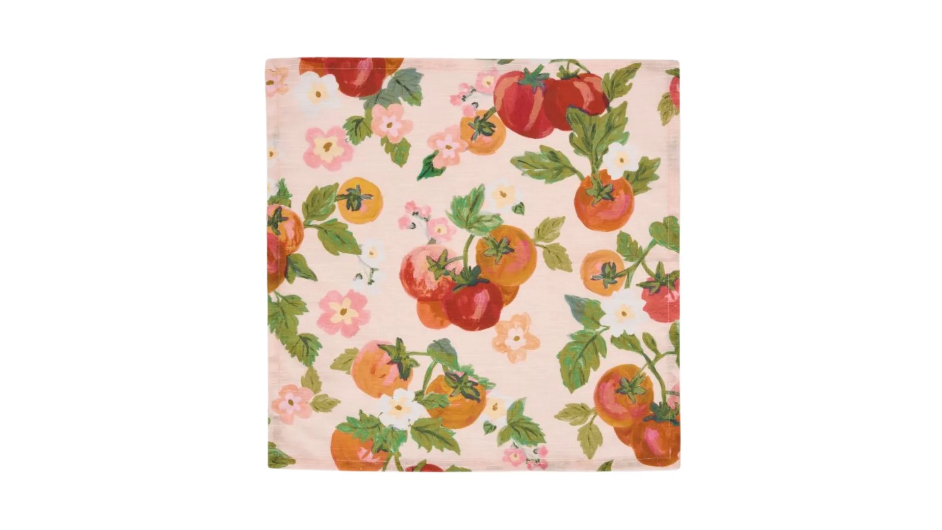 Summer style meets holiday cheer with this vine tomato and floral napkin set, the ultimate gift for those who love a pop of colour! Hand-painted on textured cotton slub with bright pink, red, orange and green hues, they truly are a festive feast for the eyes.