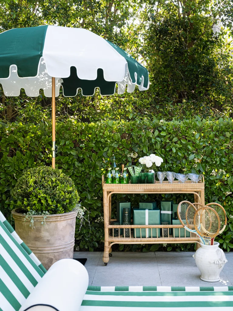 Start to think about the weather. “If you have an outdoor table, invest in a large outdoor umbrella to keep the area cool,” says interior stylist Aimee Tarulli of Archer Interiors. “Add some outdoor bean bags to create an informal break-out space where your guests can relax and unwind after a big lunch.”