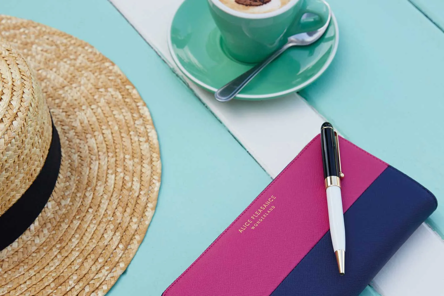 The collection features a range of fun and brightly coloured every-day items, including notebooks, pens and playing cards, then extends to more lifestyle accessories such as leather luggage tags, wristlets and passport wallets.