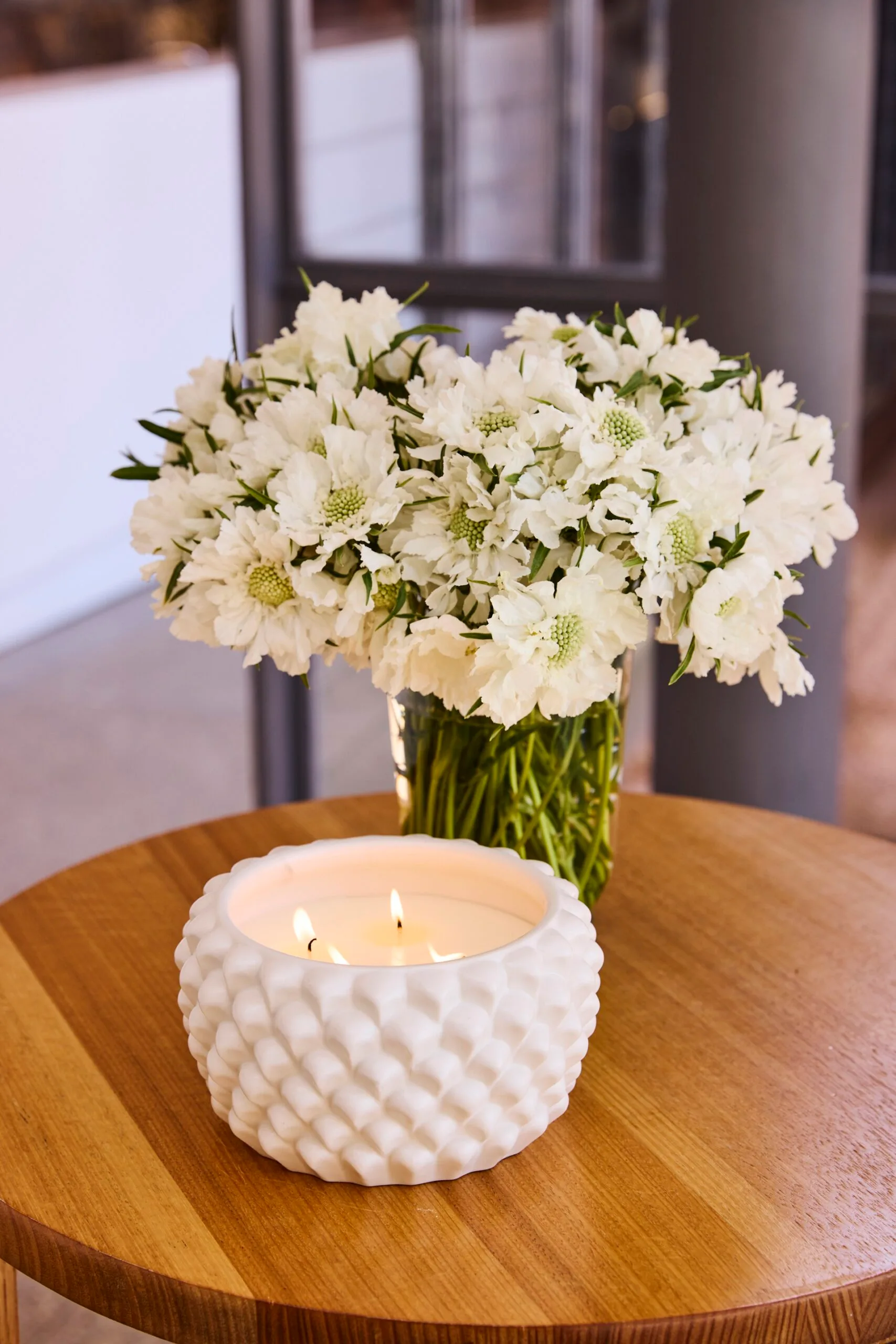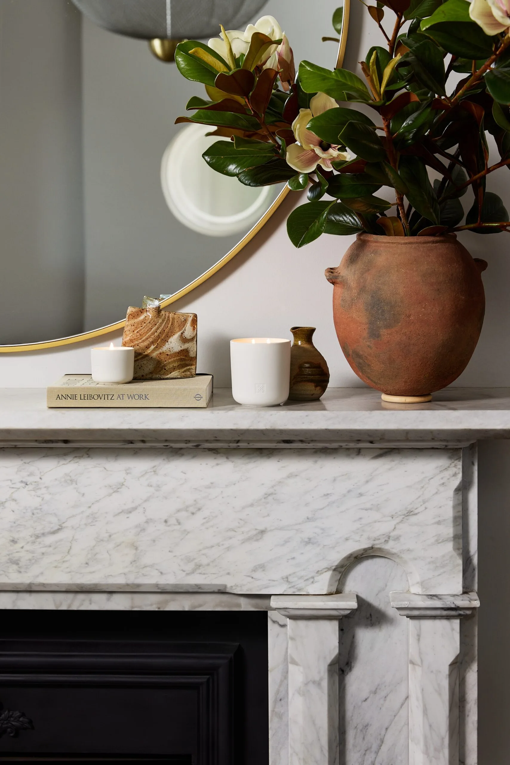 Beyond candles, there are many ways to create an aromatic home. Place a few drops of your favourite essential oil onto furniture pads in your drawers, cupboards and living spaces, to create an everlasting scent throughout your home. “You can stick them everywhere and no one sees them.” says Elle. Pair your favourite candles with hand soap and body products in the same fragrance for a holistic experience.