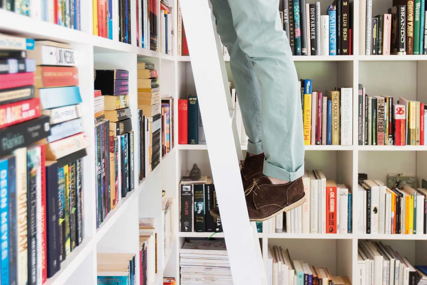 Once upon a time we filled entire rooms with books. We reached the upper levels with clever wall-hung ladders that slid along custom-built rails from side to side.