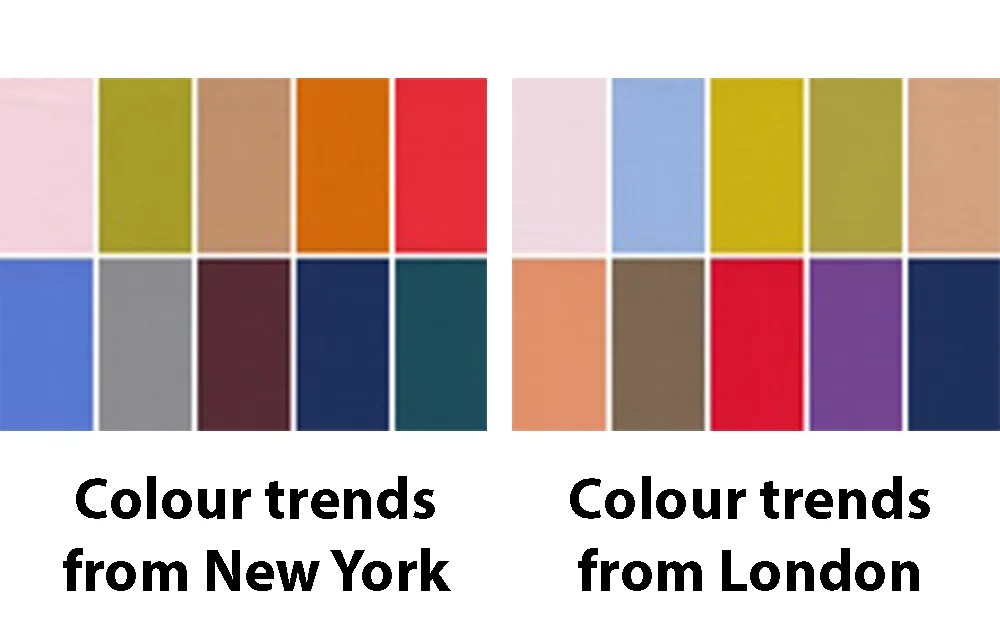 The trending colours are inspired by London Fashion Week and New York Fashion Week with vivid scarlet popular in the UK and red a favourite in the US.