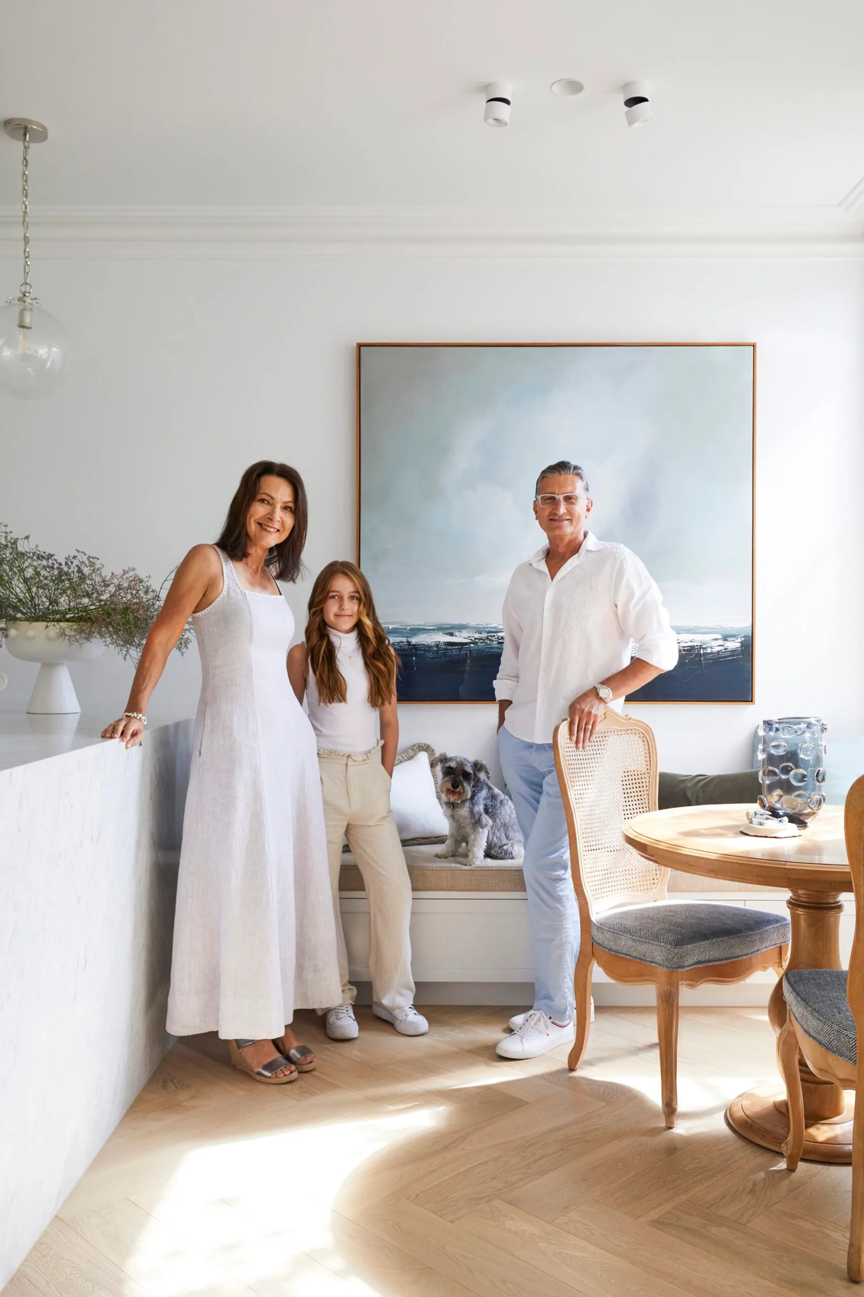 Kelly and Mark, both in financial services, their daughter Emily, 10, and Lulu the six-year-old Miniature Schnauzer. What’s your design style? Kelly: “French, stylish, luxurious and a little minimalist – no clutter.” Any renovation challenges? “With our home built in the 1880s we had some interesting angles and measurements along the way.” Most used space? “The kitchen and butler’s pantry provide all we need – situated in the middle of the home, it provides easy access to the paved terrace for outdoor entertaining and the dining room for more formal dinners.