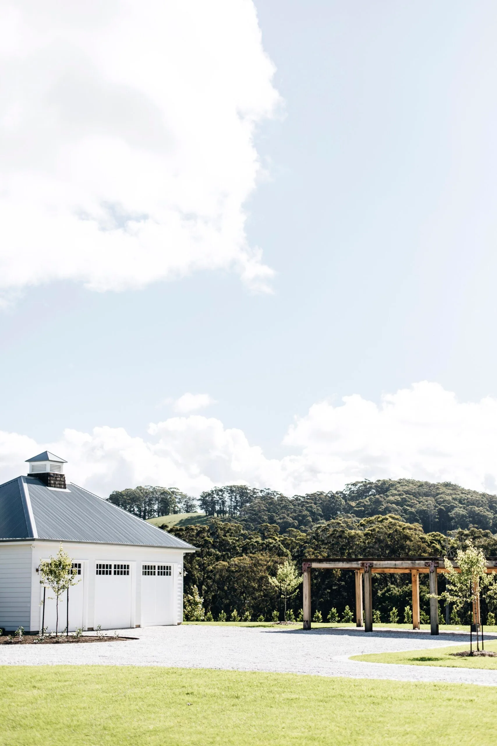 Nestled gracefully in the rolling hills of the Southern Highlands, this elegant farmhouse blends seamlessly into its surroundings. The soft white facade in Dulux Rottnest Island is paired with crisp Dulux Vivid White trims and a roof in Colorbond Windspray. Natural cedar shingles under the side gable add tactile texture and rustic charm, perfectly marrying classic country style with the breathtaking pastoral landscape.