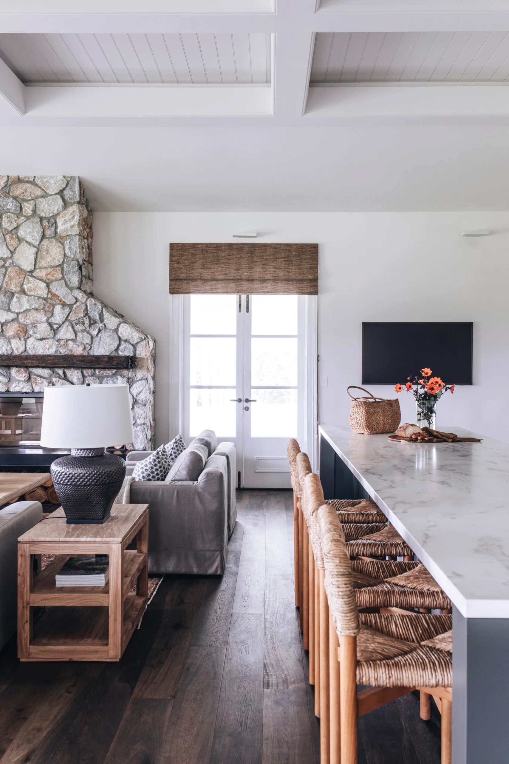 Set among rolling hills, the home was “thoughtfully designed to embrace its scenic rural surroundings,” says Jessica Halvorsen, interior design director at Halvorsen Interiors. With a generous single-storey layout and strong north-south orientation, the interiors reflect a relaxed, classic country style. The stone-clad fireplace with a recycled hardwood mantle bring rustic elegance, while crushed linen bedding and natural woven blinds invite a laidback, luxurious feel.