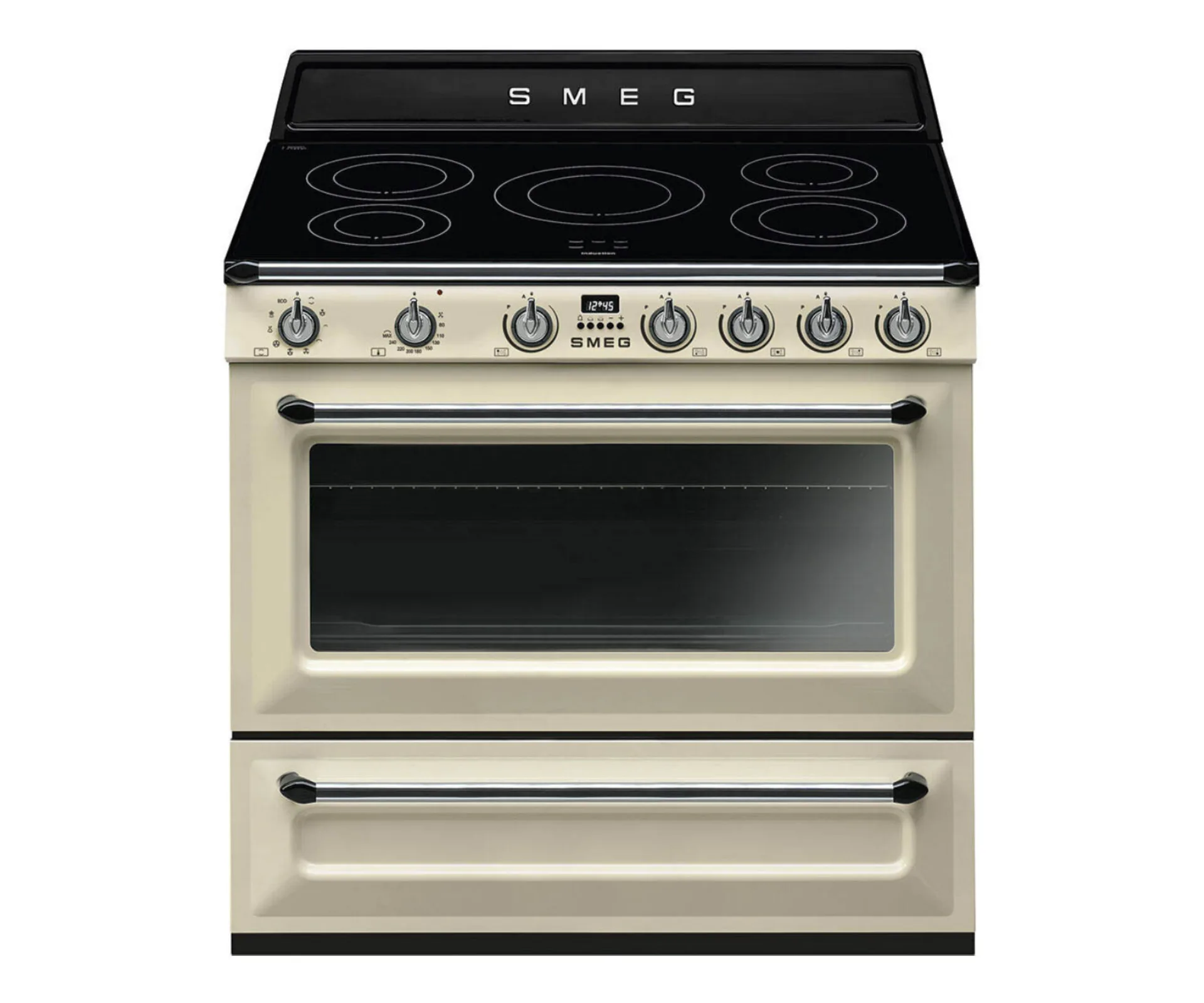 Smeg 90cm ‘Victoria’ freestanding cooker with induction hob in Panna Cream