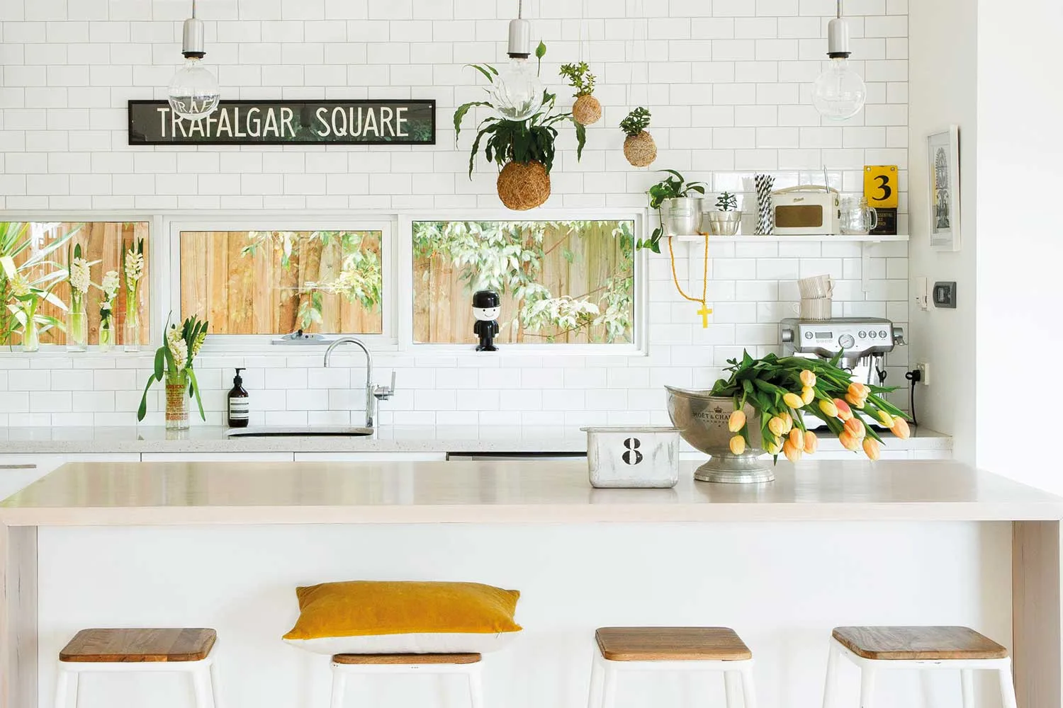 Your cabinetry forms one of the largest surfaces in your kitchen so a makeover of the cupboard doors and handles can effect a complete transformation. If this is too hard, simply take them off and style up your shelves for display.