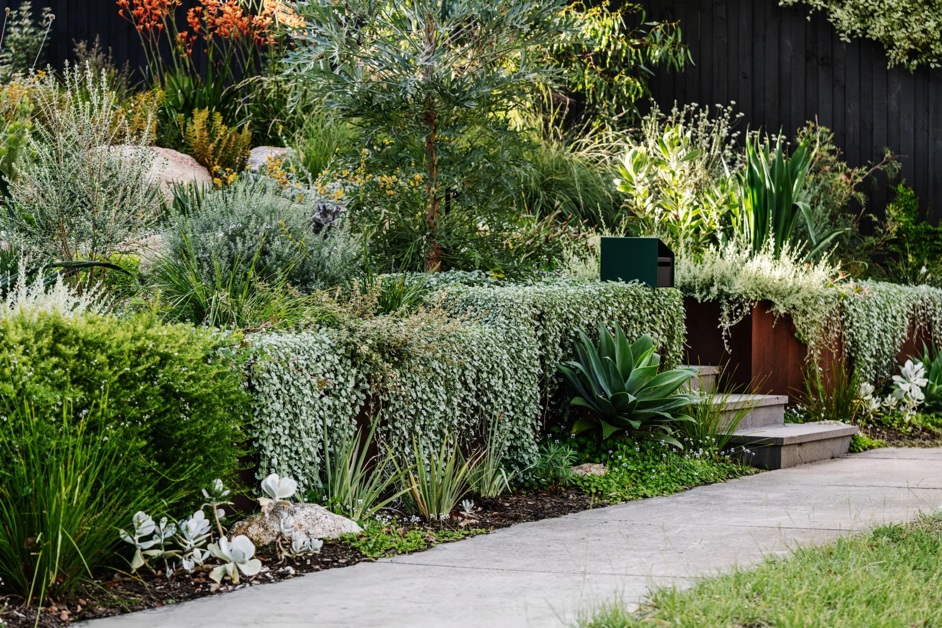It was a challenge, but Lori was excited to create a sustainable garden to match the energy-efficient Passivhaus in construction. She completed the design in stages, working with builders MVH Constructions as they excavated the site. This collaborative process helped instil a sense of untamed beauty. Says Lori, “That created the layers in the garden and it just evolved from there.”