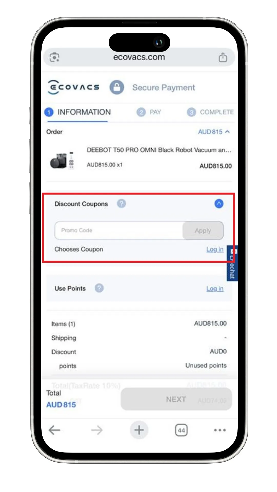Redeeming your ECOVACS coupon code is simple