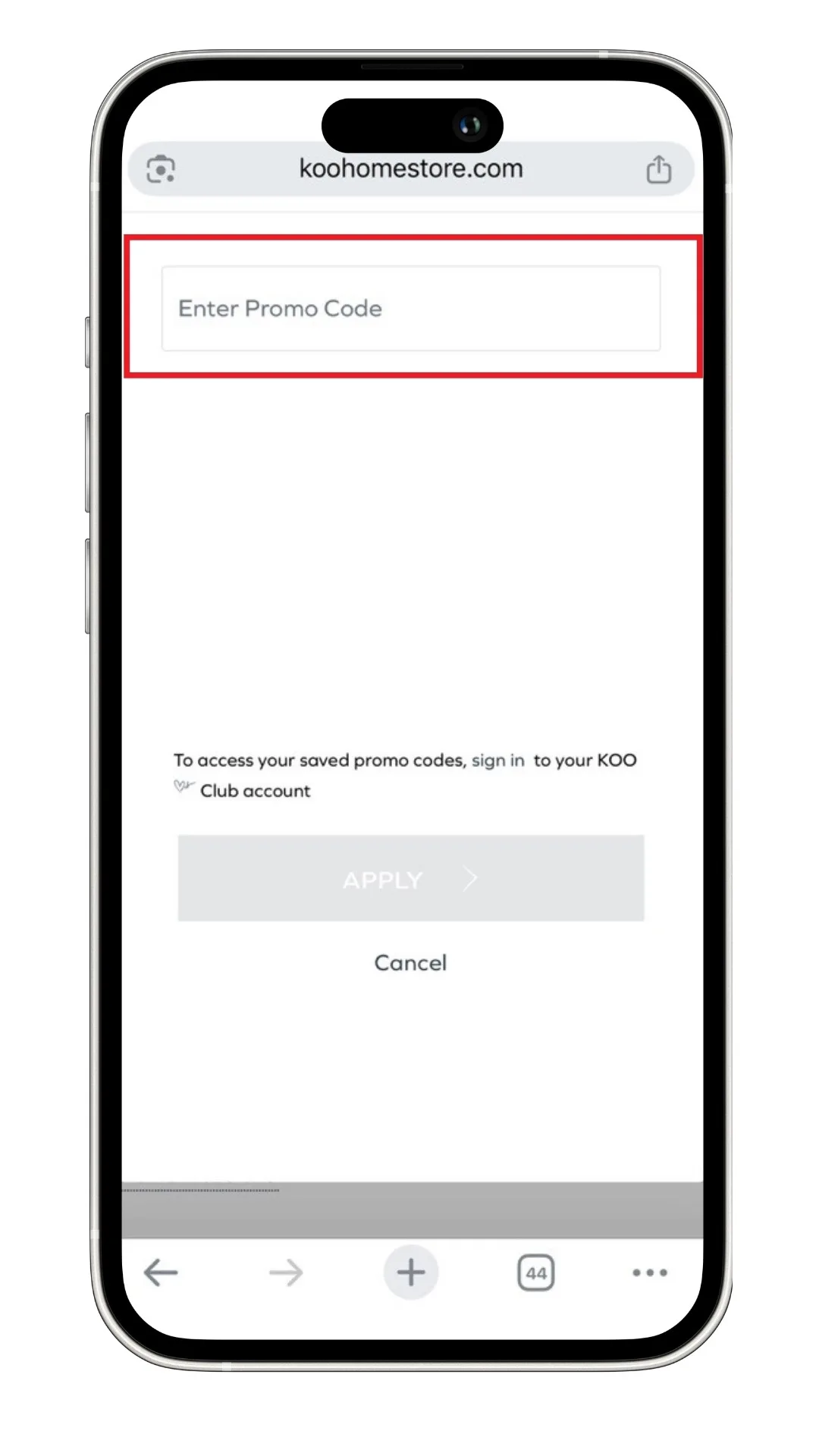 Applying your KOO promo code is easy