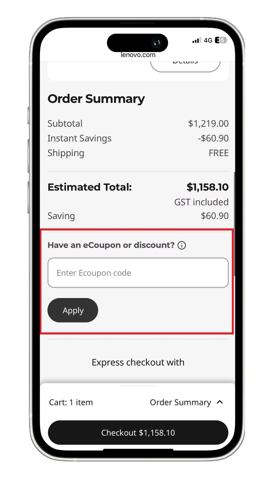 - Apply your code: You’ll apply your code in your cart. Find where it says ‘Have an eCoupon or discount?’ Enter your promo code in the discount field and click ‘apply’. Your updated total appears immediately.