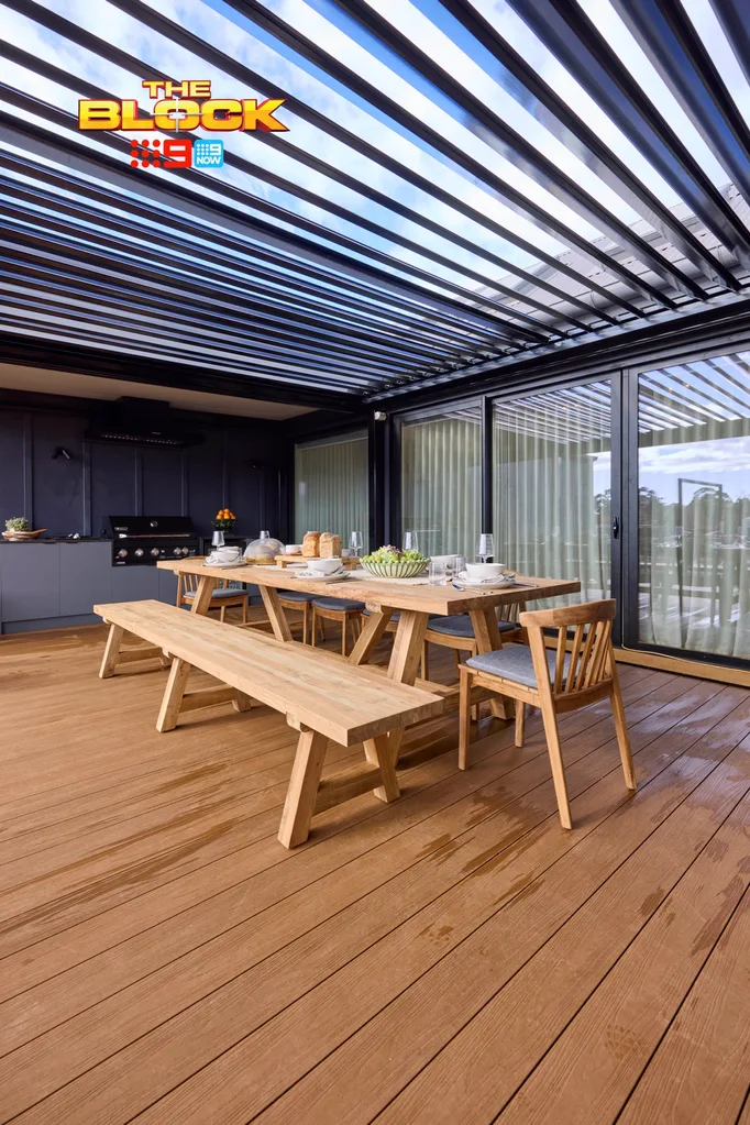Robby and Mat’s laid back outdoor terrace went down a treat with the judges, with their timber dining setting and built-in barbecue providing everything that a family needs.
