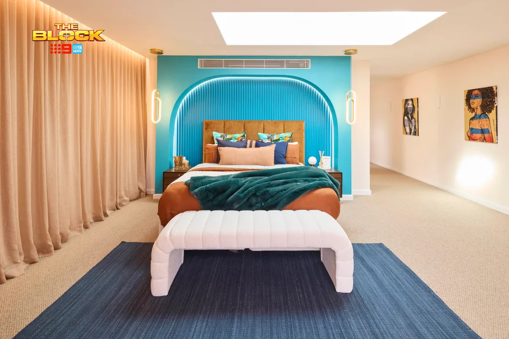 So, how did The Block teams go? From bright blue feature walls and tiny rugs to luxurious dressing rooms and cosy fireplaces, these are all of the best and worst design choices from The Block’s main bedroom reveals.