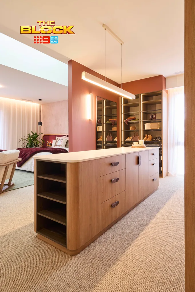 This week, the teams were given a generous space to work with – but it was up to them to figure out how much space to dedicate to the bedroom and to the adjoining walk-in-robe. The teams who nailed the rooms were those who gave a little extra love to the wardrobe space, transforming it from a simple walk-in into a full dressing room experience.