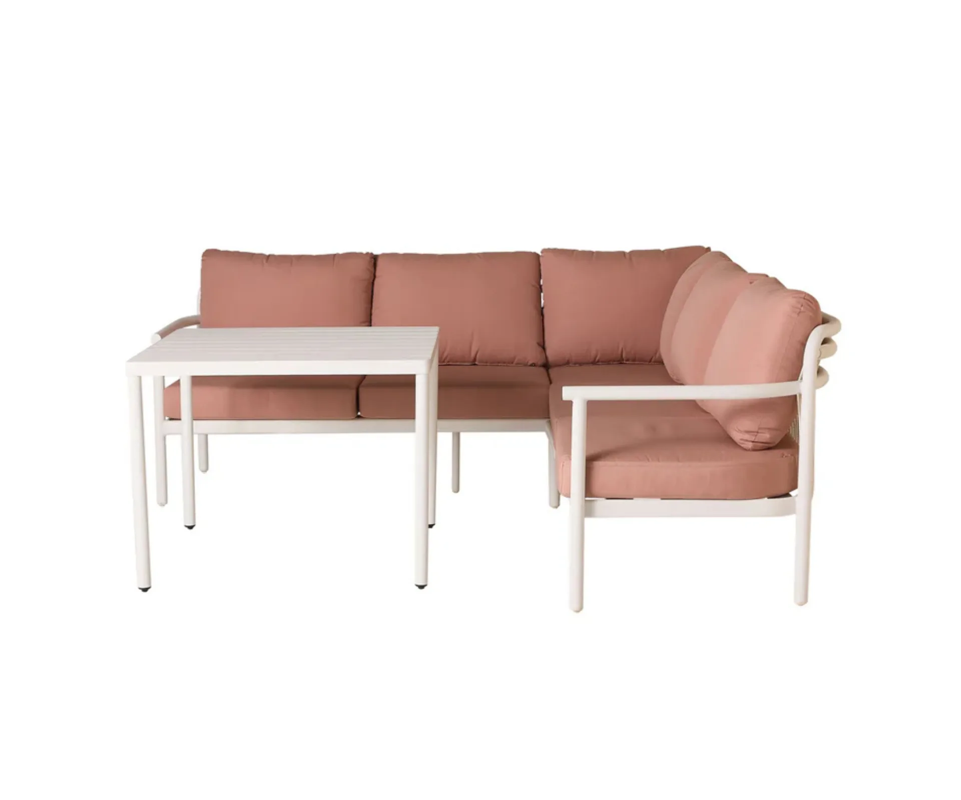 With a crisp white powder-coated aluminium frame, woven synthetic rope detailing, and cushions in a delightfully soft blush tone, the Milly Set is built to withstand harsh Australian summers (and look good while doing so). It’s the kind of piece that invites long afternoons in the sun and easy entertaining all summer long.
