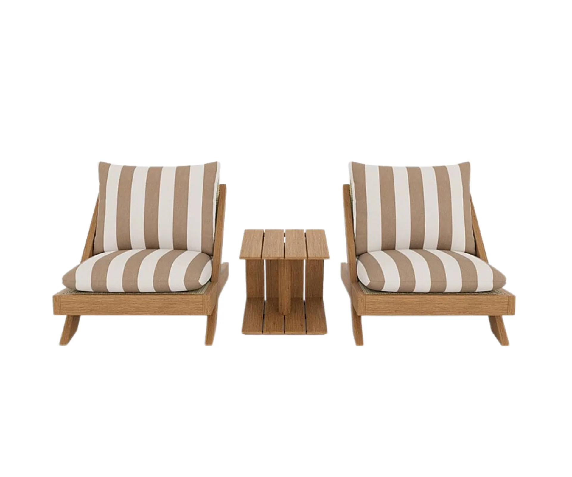 Designed for slow mornings and sunset conversations, the Manly Outdoor Package is made for two. With its beautifully grained acacia wood frame and tactile woven detailing, this compact yet luxurious setting creates an inviting space to unwind together.