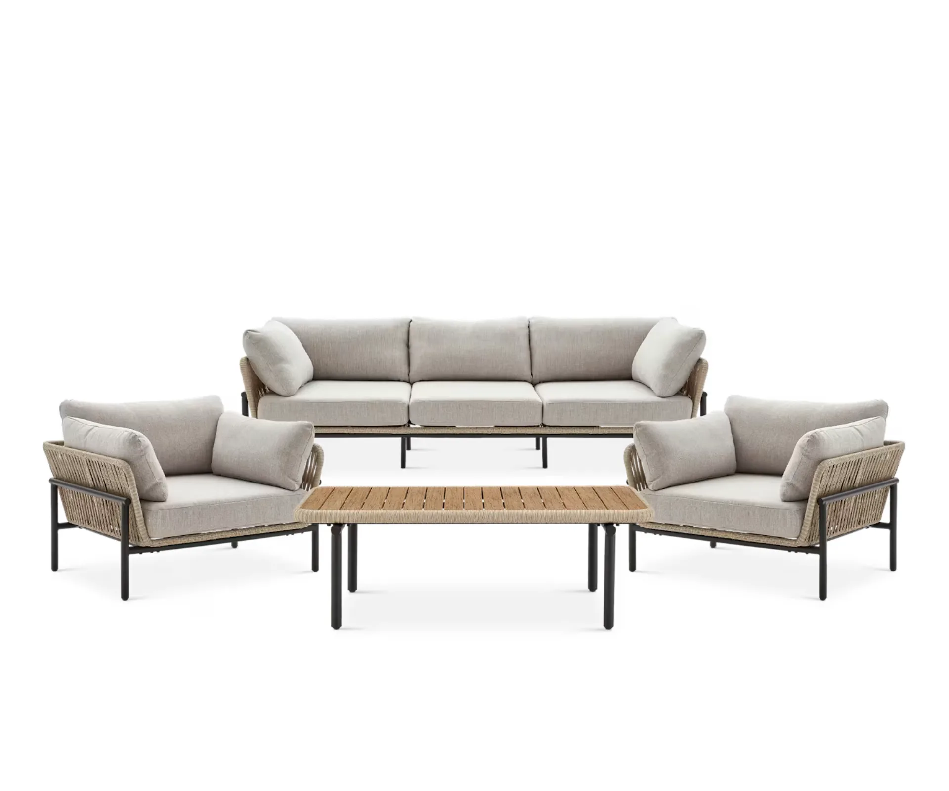 Generous, plush cushions invite long, unhurried moments; morning coffees, evening drinks, or quiet afternoons with your favourite book. Lightweight yet durable, the aluminium-framed pieces are designed to move with you, making this set as versatile as it is visually serene. Ideal for terraces, courtyards, or garden retreats, the Sierra set turns any outdoor corner into a space of understated elegance and easy comfort. And the best part? It’s on sale now.