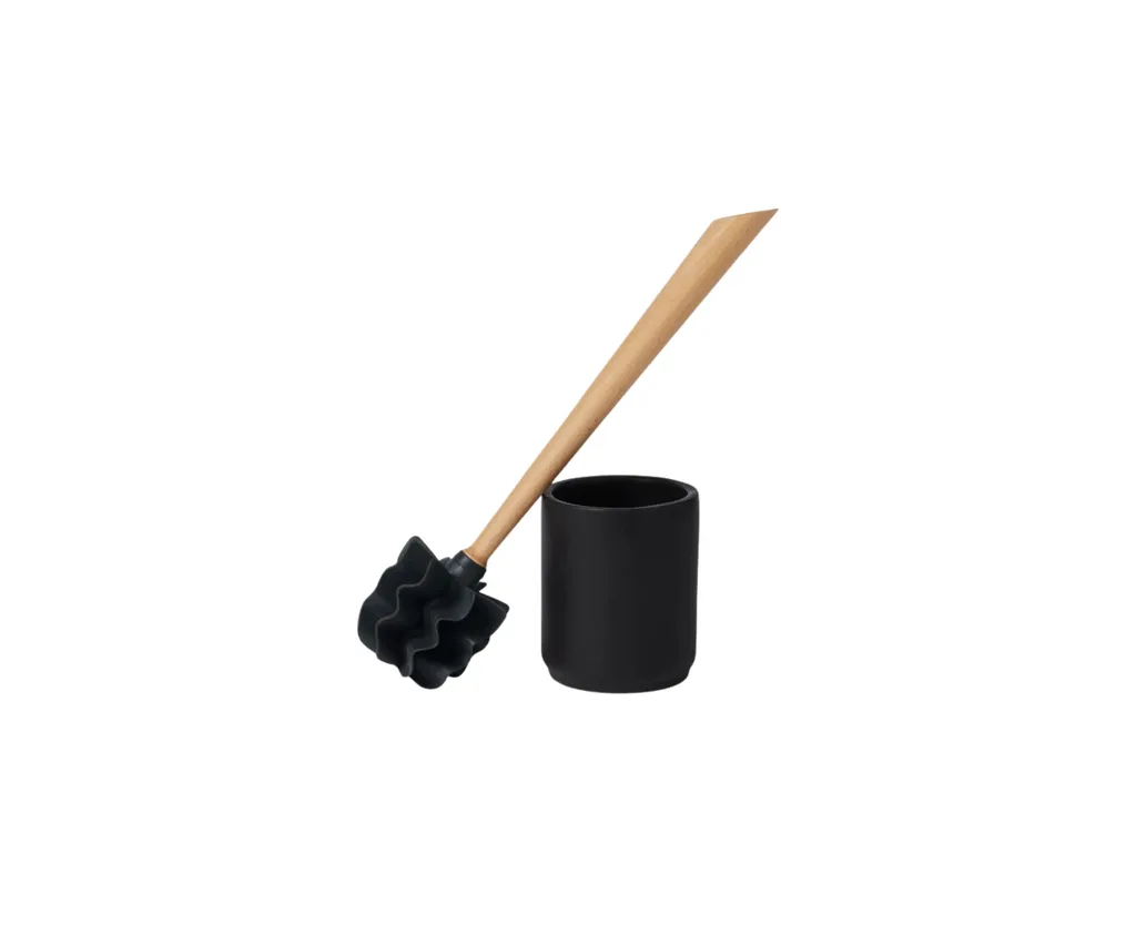 Materials: Ceramic base, timber handle, recycled TPE head.
