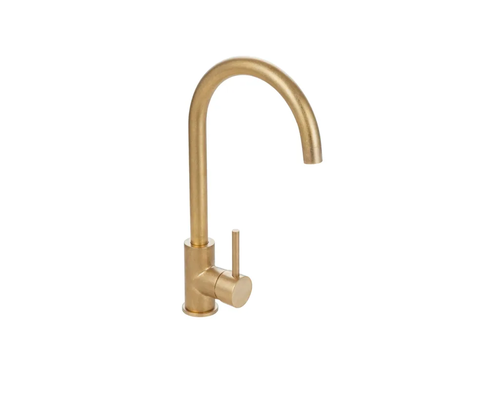 ‘Elysian’ kitchen mixer in Tumbled Aged Brass, $324.90,